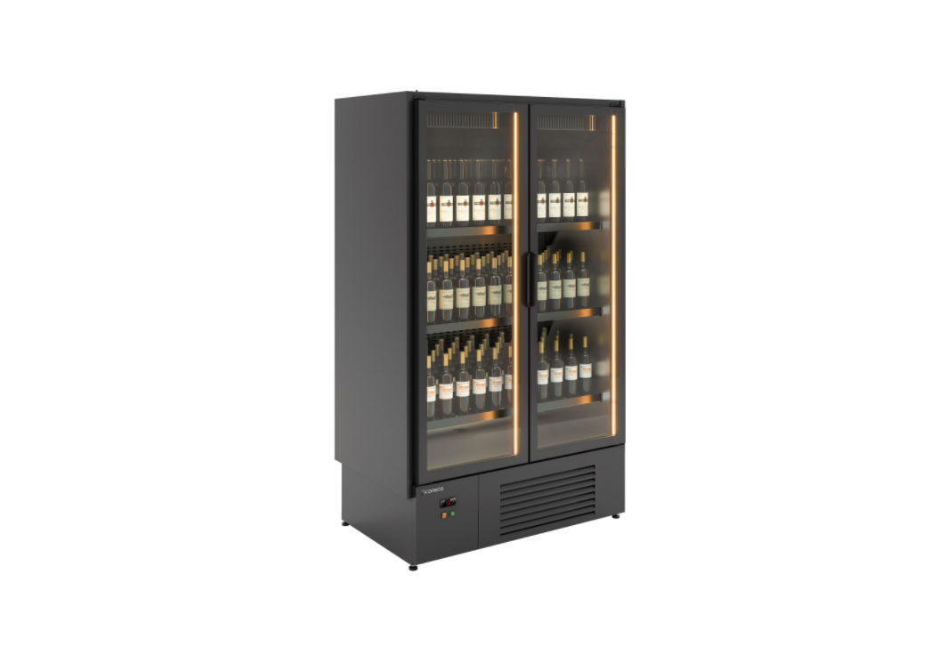 storage capacity - Frameless swing doors and full glass front with minimal black RAL 9005 screen printing with