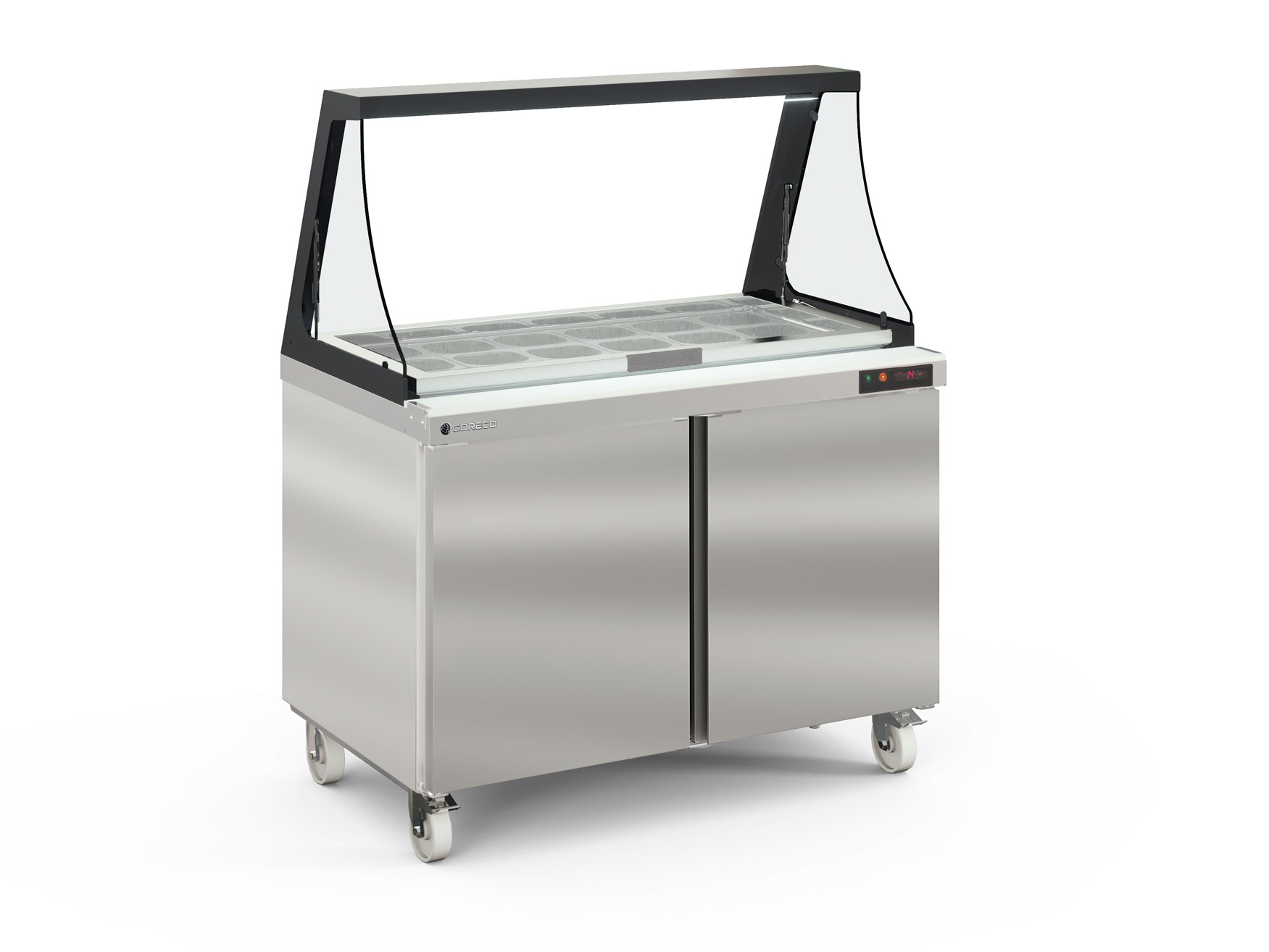 - Robusta estructura elevable, con doble cristal para mantener la temperatura del área de cubetas
