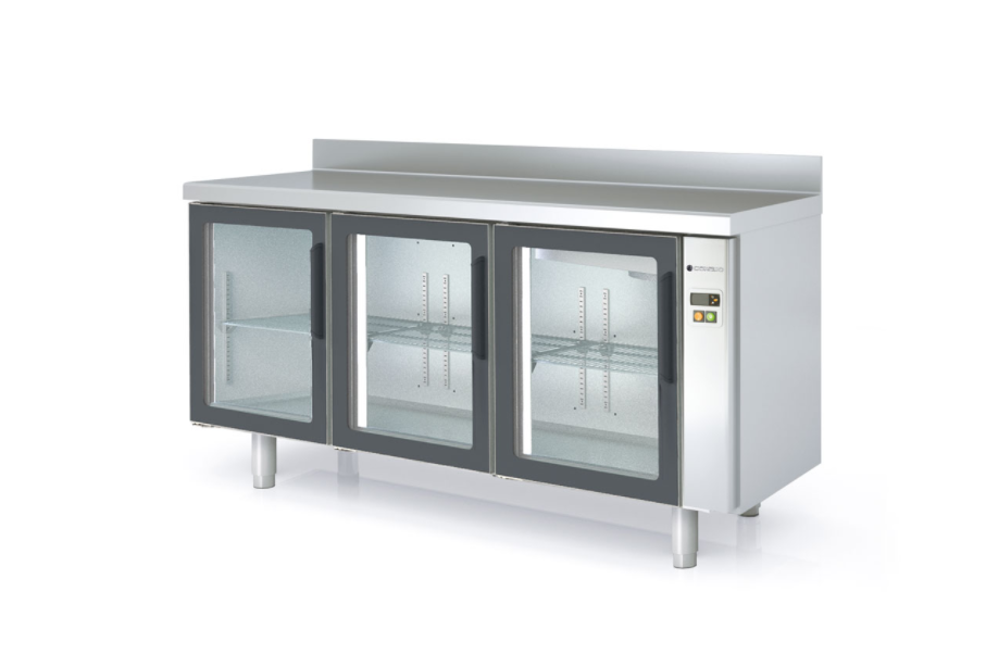 magnético (permanece abierta al superar los 90° de apertura) - Encimera de acero inox AISI-304 con frente recto y peto trasero sanitario de