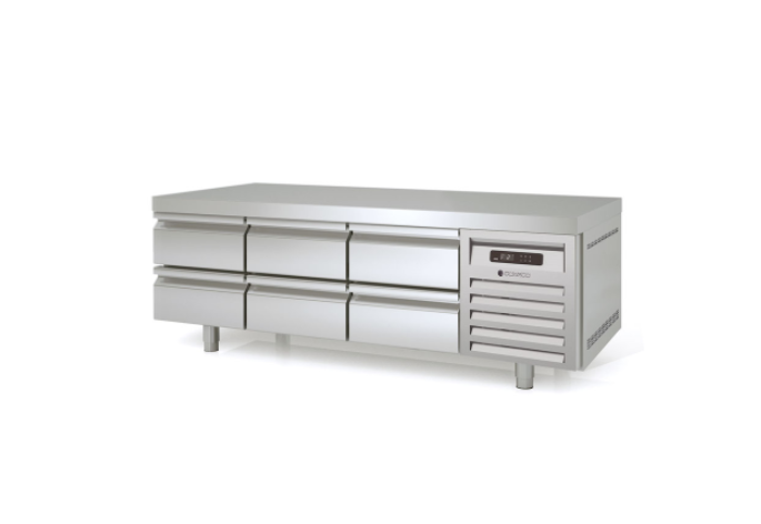 - MFB-CC: Cajoneras refrigeradas inox desmontables sobre guías inox telescópicas, sistema auto-cierre de serie