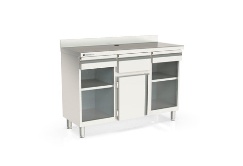 - Encimera con frente recto y peto trasero sanitario de 100 mm (Opcional