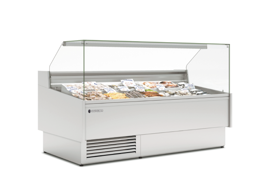 • Plano de exposición hermético de altura 65mm, con desagüe canalizado al exterior, fabricado en acero inox. AISI-316