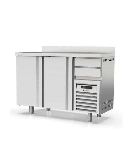 - Plan de travail en acier inoxydable AISI-304 avec façade droite et dosseret sanitaire