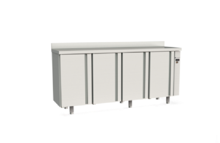 - Plan de travail en acier inox AISI-304 avec façade droite et dosseret sanitaire de