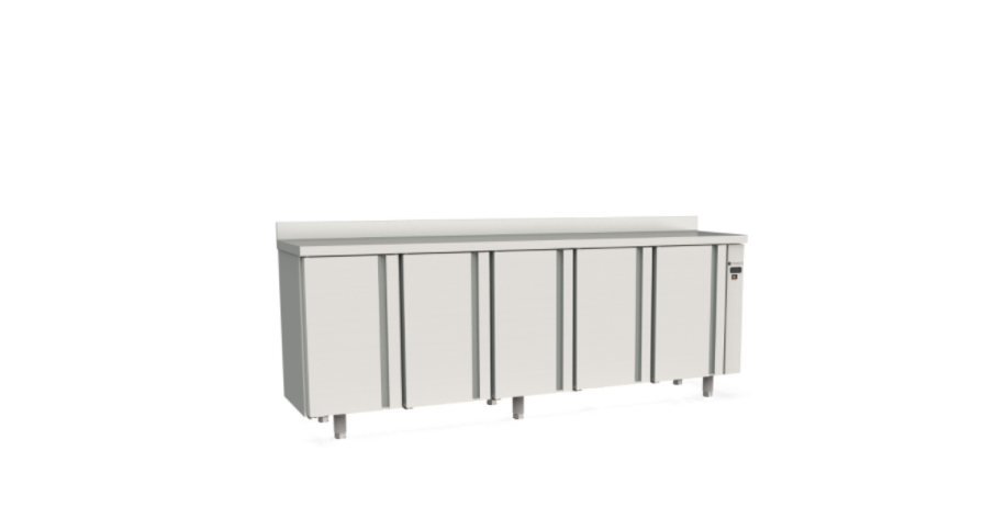 - Plan de travail en acier inox AISI-304 avec façade droite et dosseret sanitaire de