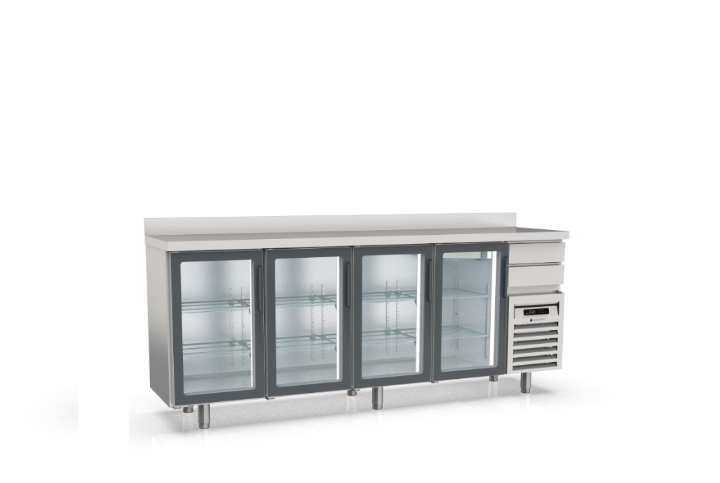 - Plan de travail en acier inoxydable AISI-304 avec façade droite et dosseret sanitaire de