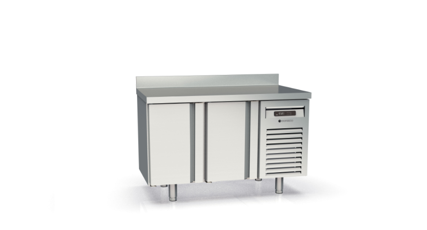 - Plan de travail en acier inoxydable AISI-304 avec façade droite et dosseret sanitaire de