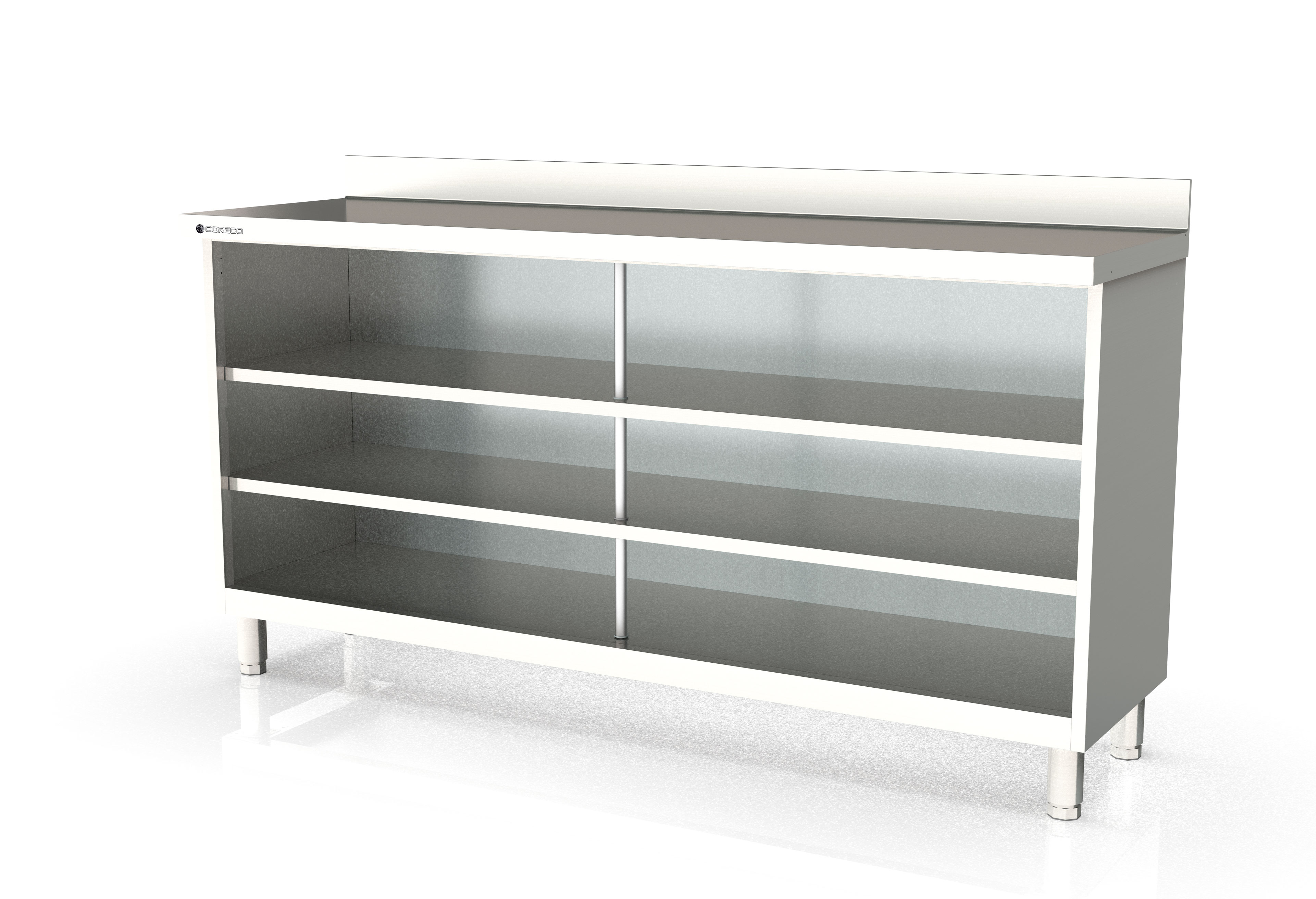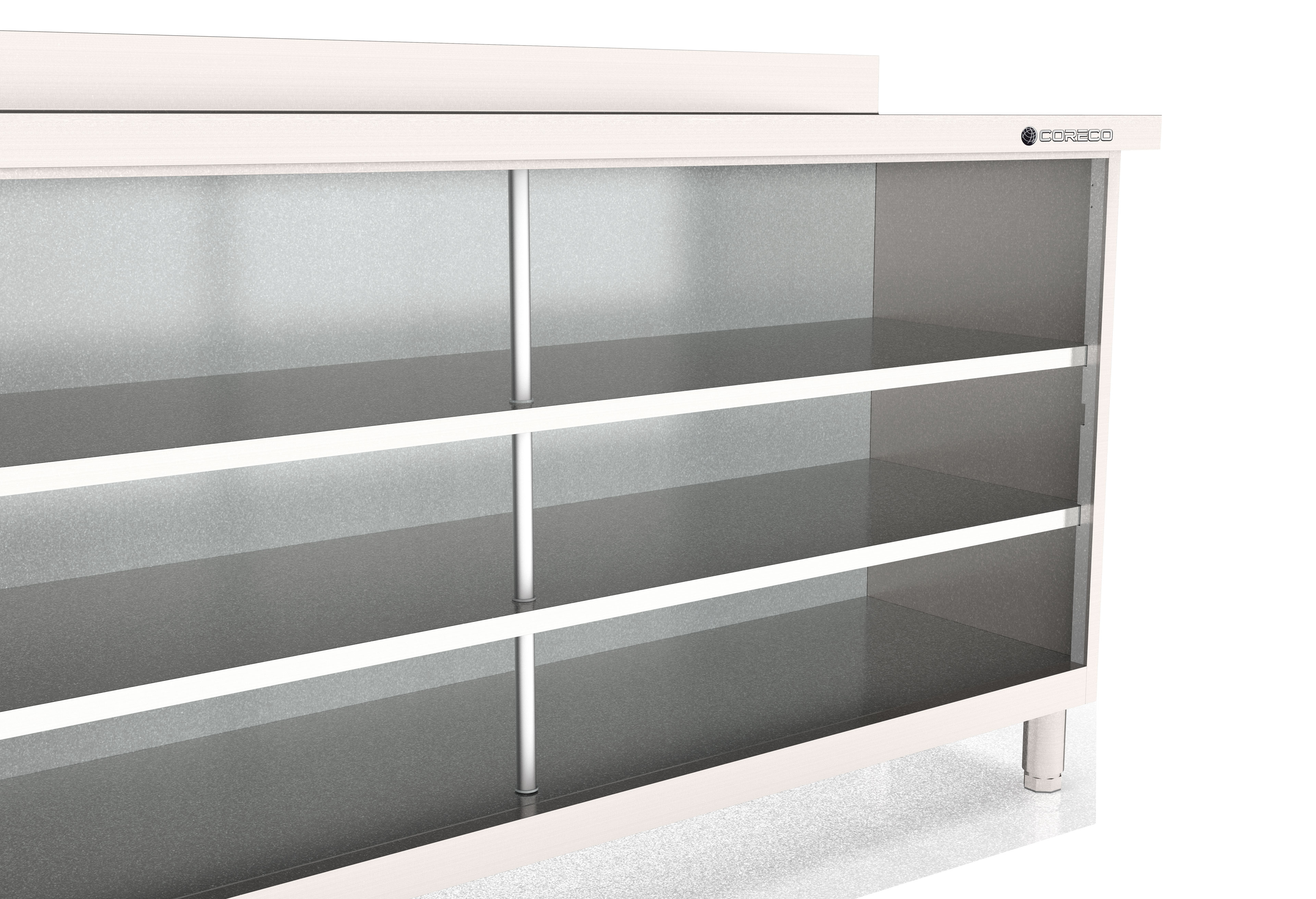 - Worktop, with 90° front and 100 mm sanitary upstand (optional without upstand)