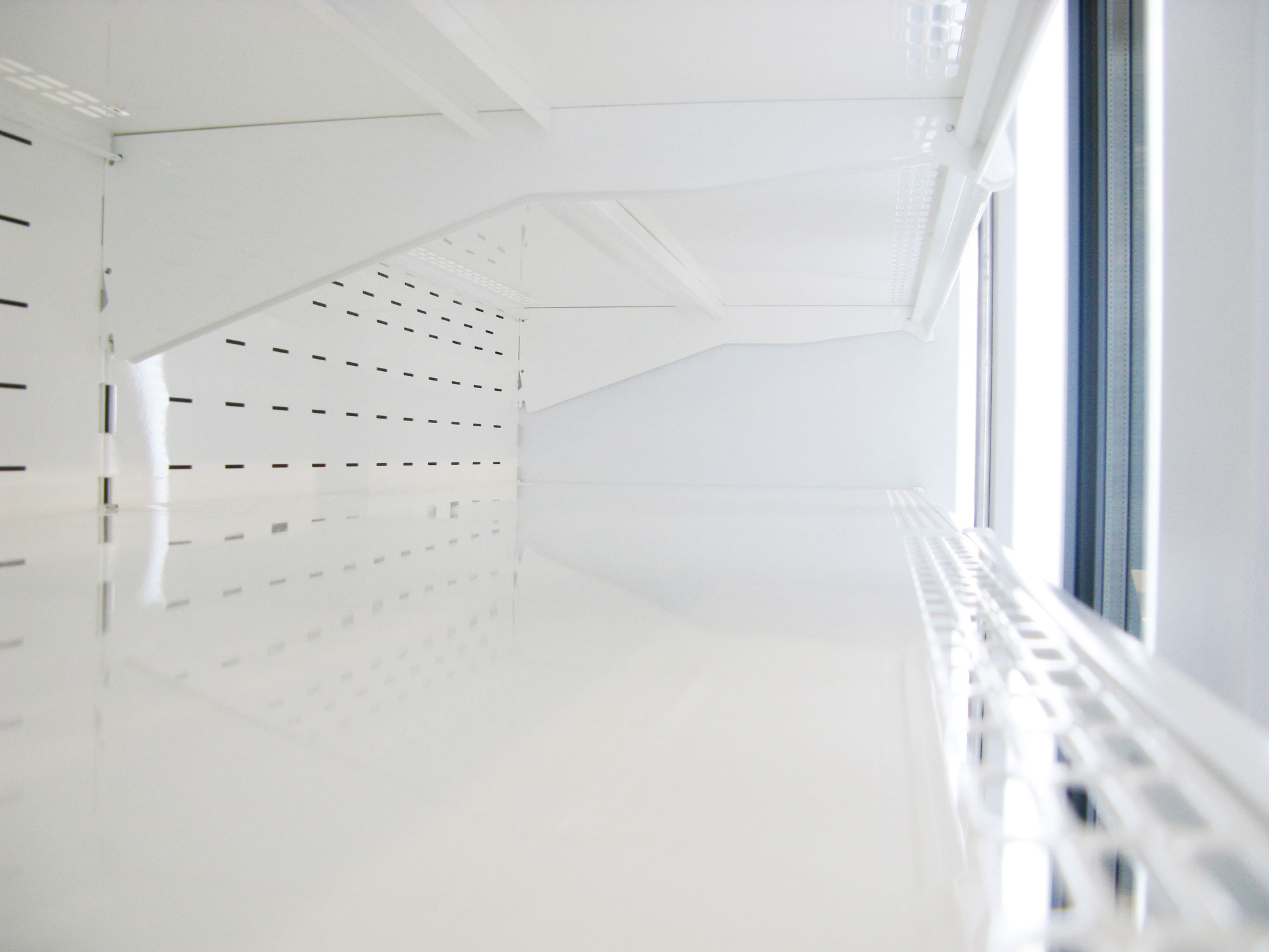 - Intérieur en acier plastifié blanc (noir en option), avec bords arrondis et fond