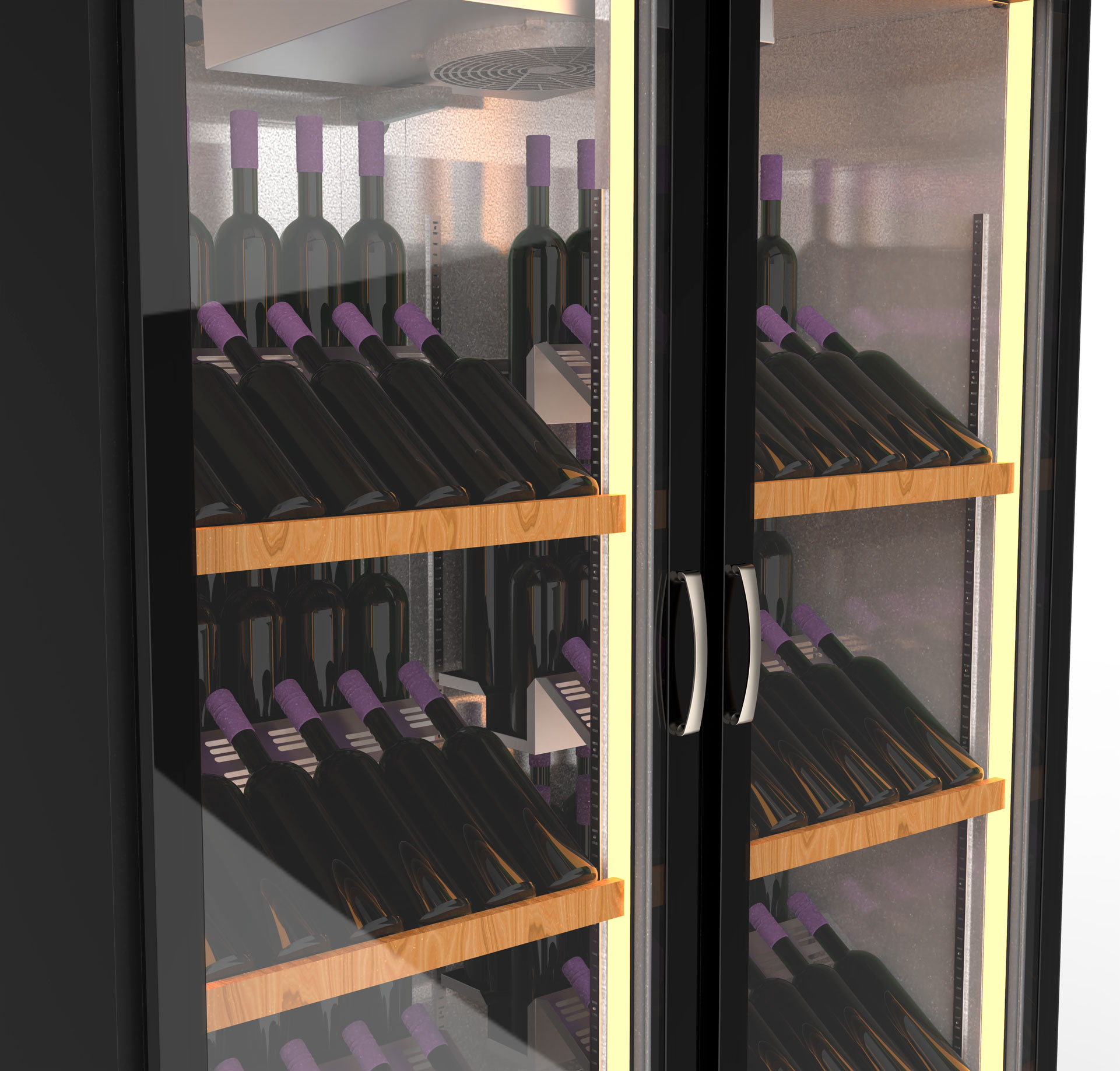 - Étagères en AISI-304 avec façade en bois, inclinables à 20