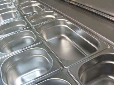 - Couvercle en acier inoxydable AISI-304, isolé, rabattable sur le logement des bacs