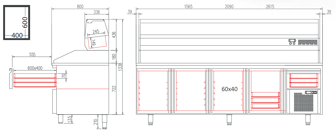- Tiroir neutre avec 3 bacs 60x40x7 fournis