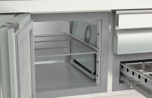 - Étagères intérieures GN 1/1 en fil d'acier plastifié, réglables en hauteur