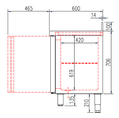 - Pieds en tube d'acier inox réglables en hauteur 135 - 210 mm