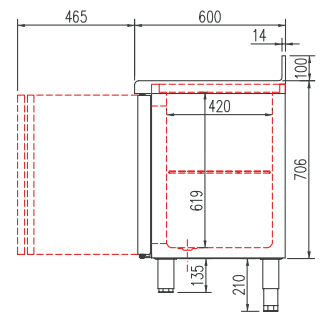 magnético (permanece abierta al superar los 90° de apertura) - Encimera de acero inox AISI-304 con frente recto y peto trasero sanitario de