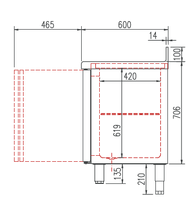 - Plan de travail en acier inoxydable AISI-304 avec façade droite et dosseret sanitaire de 100 mm (en option sans dosseret)