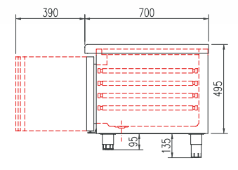 - Plan de travail en acier inoxydable AISI-304 avec façade droite (en option avec tablier sanitaire
